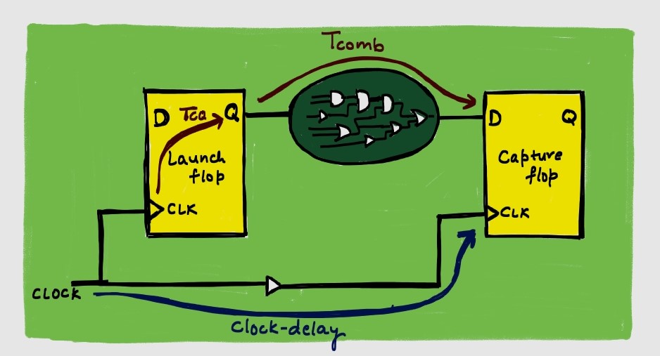 - Tcq + Tcomb + Toutput_delay < Tperiod + Tclock_delay – Tsetup