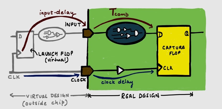 Input port receives data after ‘input delay’ as it is assumed to be launched from a flop outside the design (a virtual network).