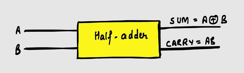 Lets understand the differences by using an example of HALF ADDER circuit. If ‘A’ and ‘B’ are inputs, the outputs are :